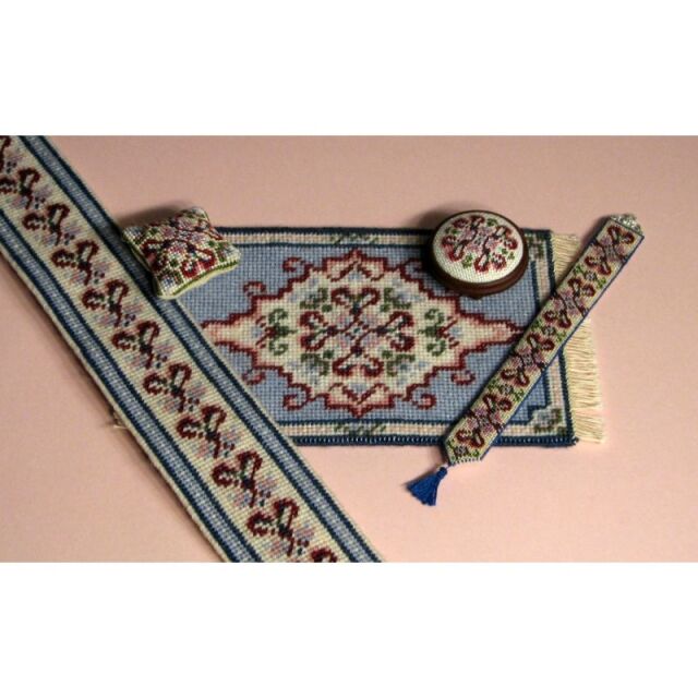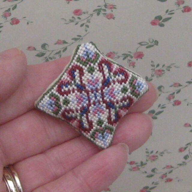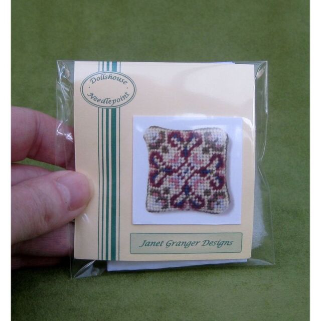 【Janet Granger Designs】【英国製】英国人デザイナー、ジャネット・グランガーさんのミニチュア ニードルポイント(刺繍)のキットです。約32x32ミリのクッションを作ります。こんな小さな刺繍、絶対に無理!!と思うかもしれませんが、作品自体が小さいので、意外と早く仕上がります!そして、出来上がりのなんと可愛らしいことか…!ドールハウスのお部屋に、命が吹き込まれるようです。そしてこのキットの素晴らしいところは、シリーズでお部屋をコーディネートできるところです。お揃いのフットスツール、タペストリー、カーペットなどがあります。少しずつ刺し進めて、お部屋をコーディネートする楽しみがあります。毎日1~2時間、ほんの息抜きに刺し進めてみてはいかがでしょうか?シリーズの中で一番難易度が低いのがこのクッションキットです。このクッションから始めて、できそうなら難しいキットに挑戦してみてはいかがでしょうか?ドールハウス好きな方へのプレゼントにもいいですね!詳細な日本語取説をお付けいたします。ぜひミニチュア刺繍にチャレンジしてみてくださいね!キット内容:キャンバス布、刺繍糸、刺繍針、クッション中綿、背面布、英語取説。難易度:初心者~